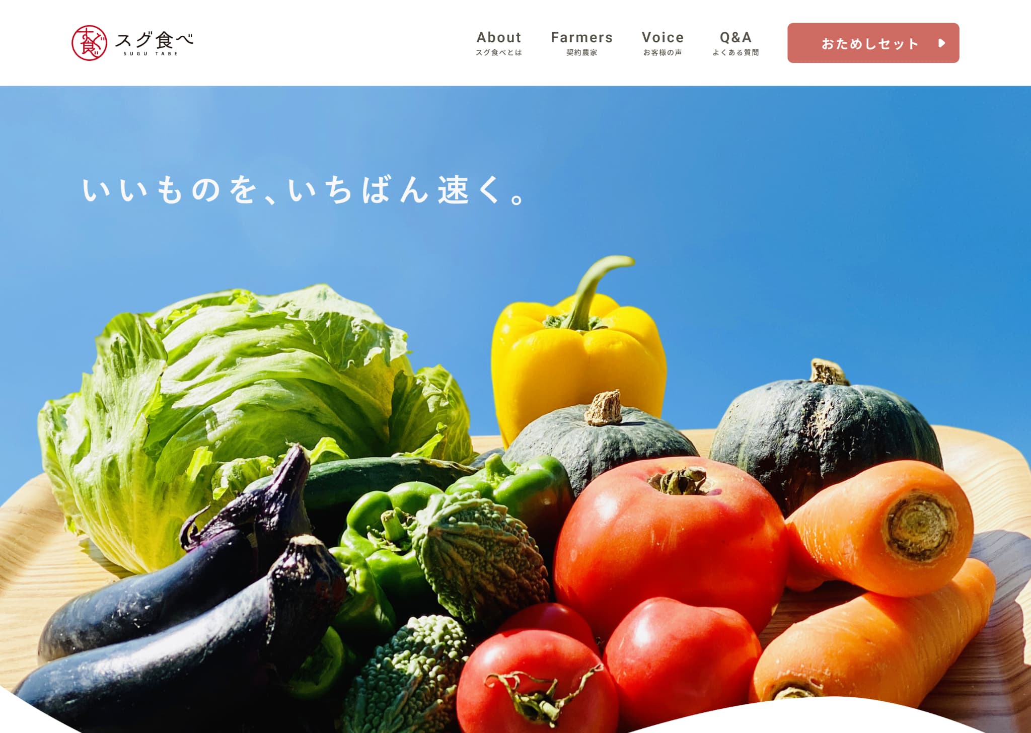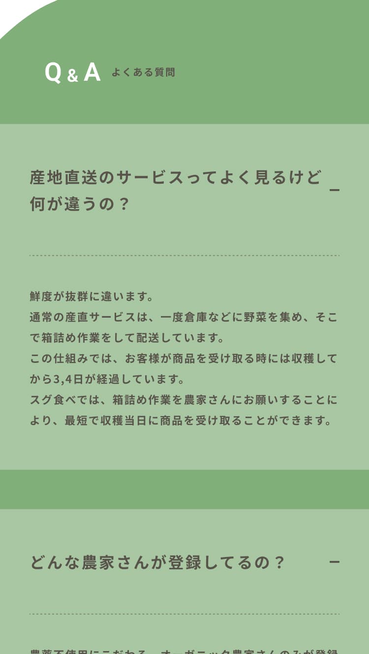 また、First Viewに青空と太陽に照らされた野菜の写真を使用したことで、サービスで取り扱っている野菜の新鮮さやヘルシー感を表現しました。