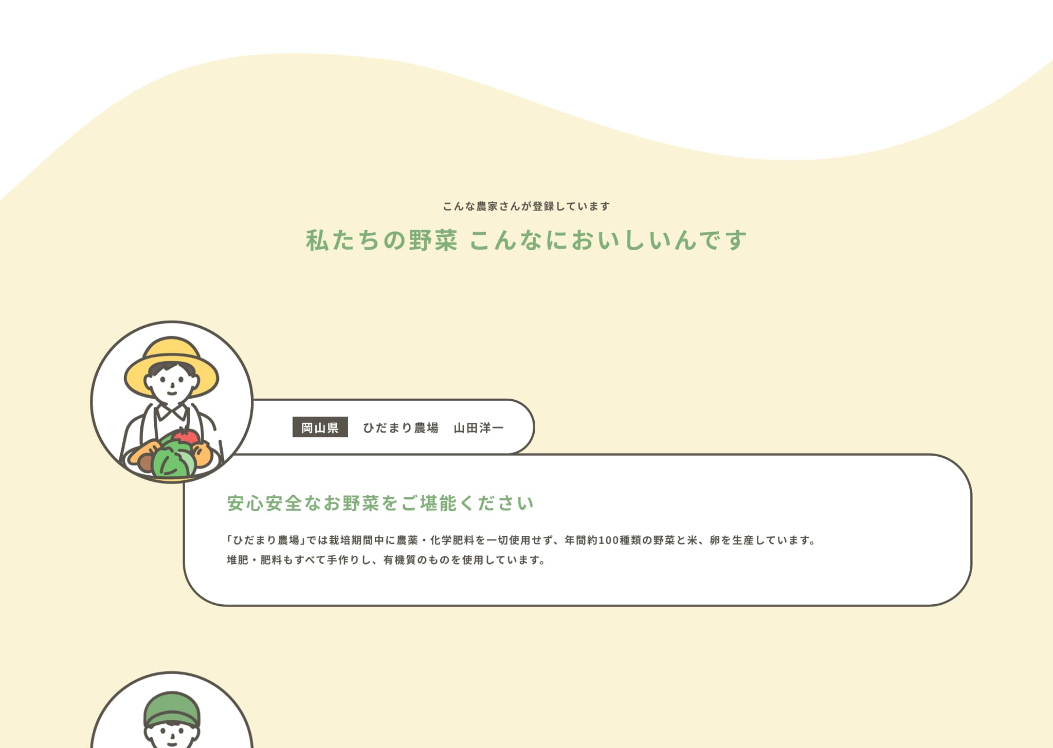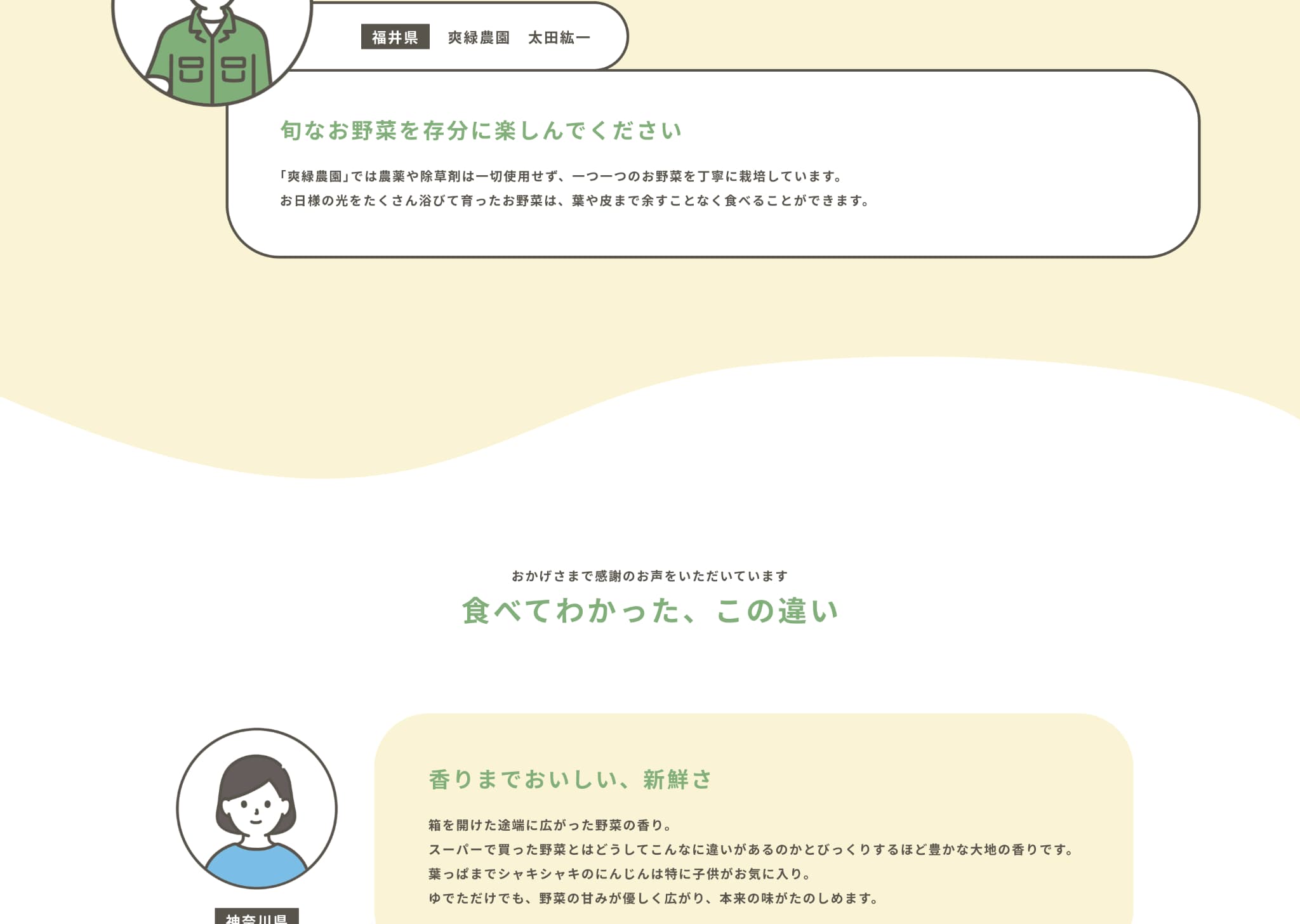 農家やユーザーのイラストは全体のデザインに合うフリー素材を使用しています。
